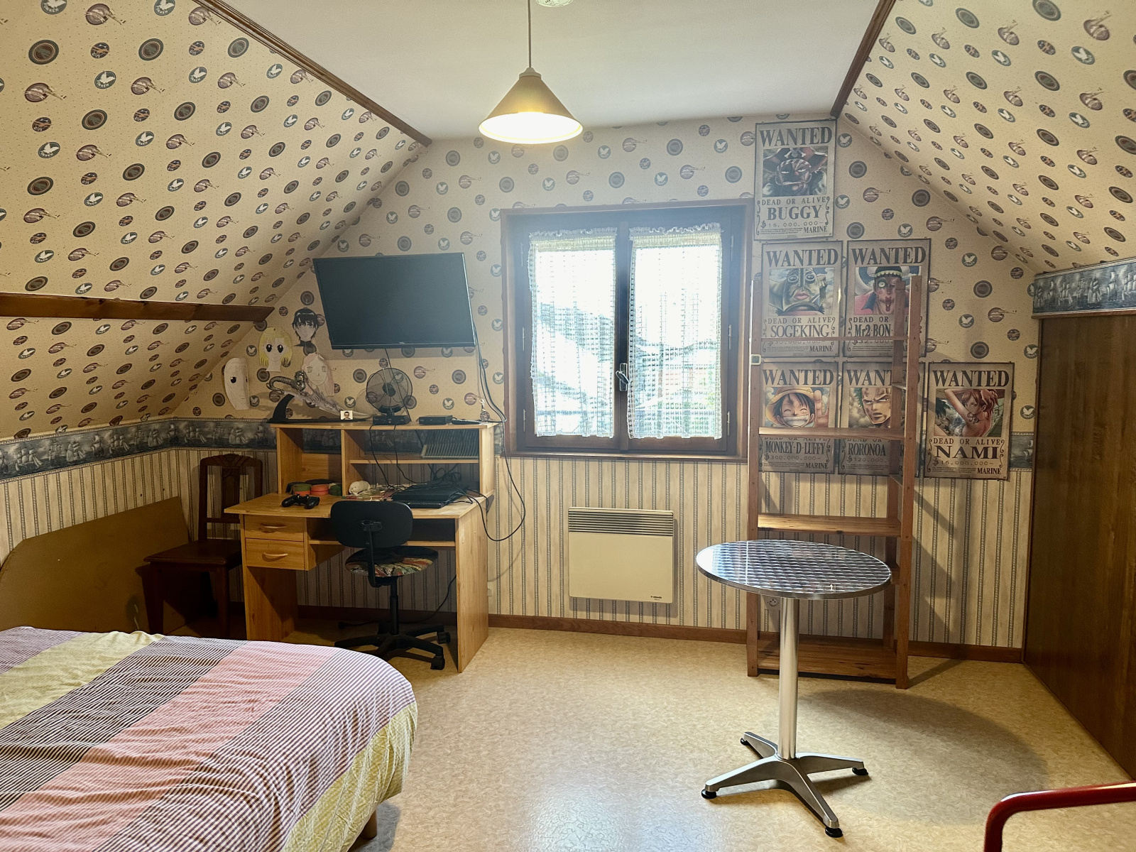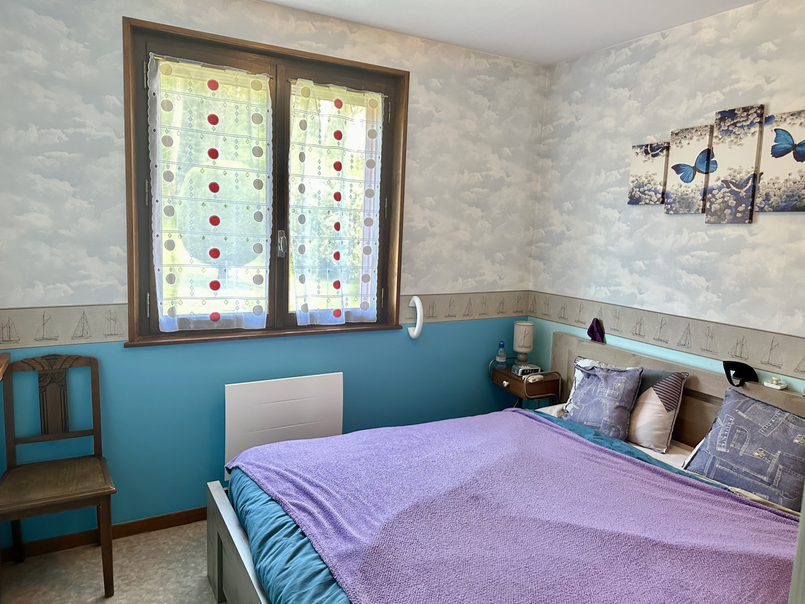 A l'étage : dégagement avec placards, 2 chambres avec placards, wc.