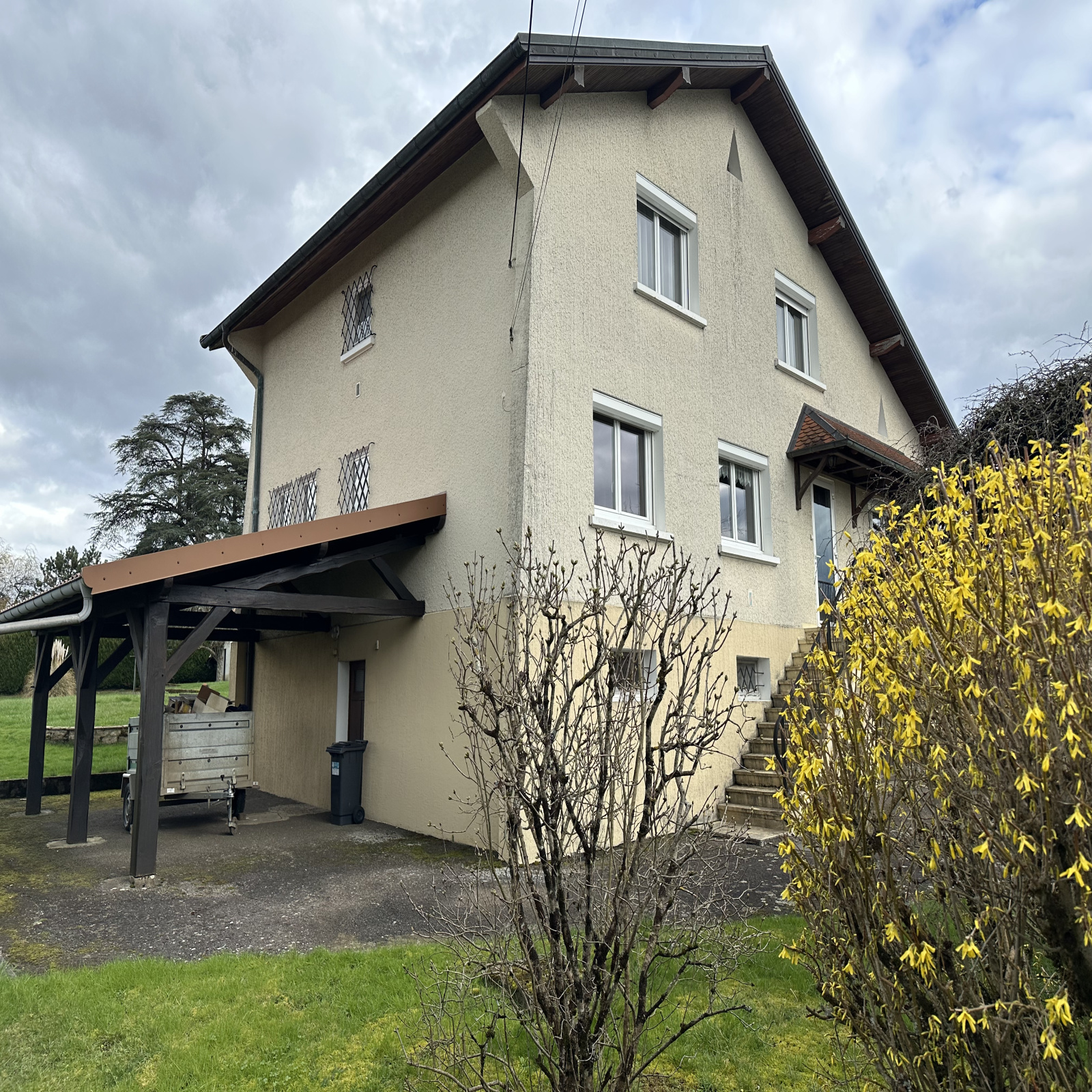 VILLERSEXEL (70), dans impasse Line et Solène sont heureuses de vous présenter en exclusivité cette jolie maison sur 3 niveaux, habitable, sur son beau terrain de 1819 m2, elle comprend : Au rez-de-chaussée : garage, chaufferie avec chaudière fuel et bois, cave, une pièce et une buanderie avec chauffe-eau. Au niveau de vie : entrée sur dégagement, cuisine équipée, salon/ salle à manger avec cheminée et accès au balcon, une première chambre avec placard, un bureau, salle de bains, wc.. Au deuxième étage : dégagement, une deuxième chambre avec une pièce, wc, une troisième chambre avec placard et lavabo, une quatrième chambre, un bureau et un grenier. Combles. Dépendance annexe : bûcher de 20m2. Chauffage central fuel et bois (2 chaudières) Assainissement : fosse septique. “Les informations sur les risques auxquels ce bien est exposé sont disponibles sur le site Géorisques http://www.georisques.gouv.fr”