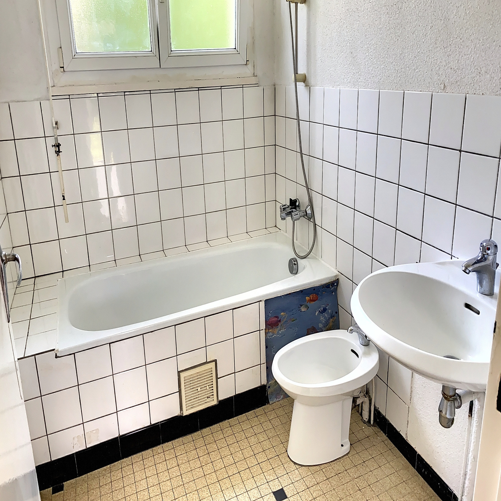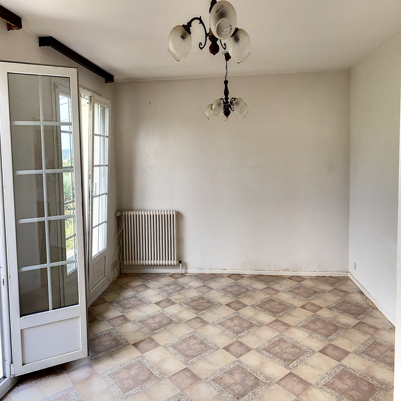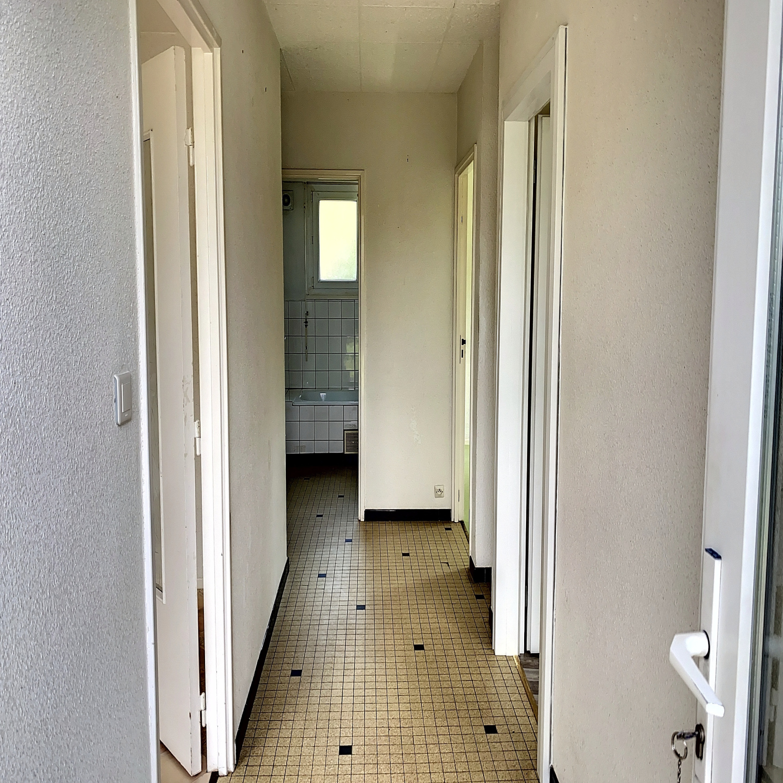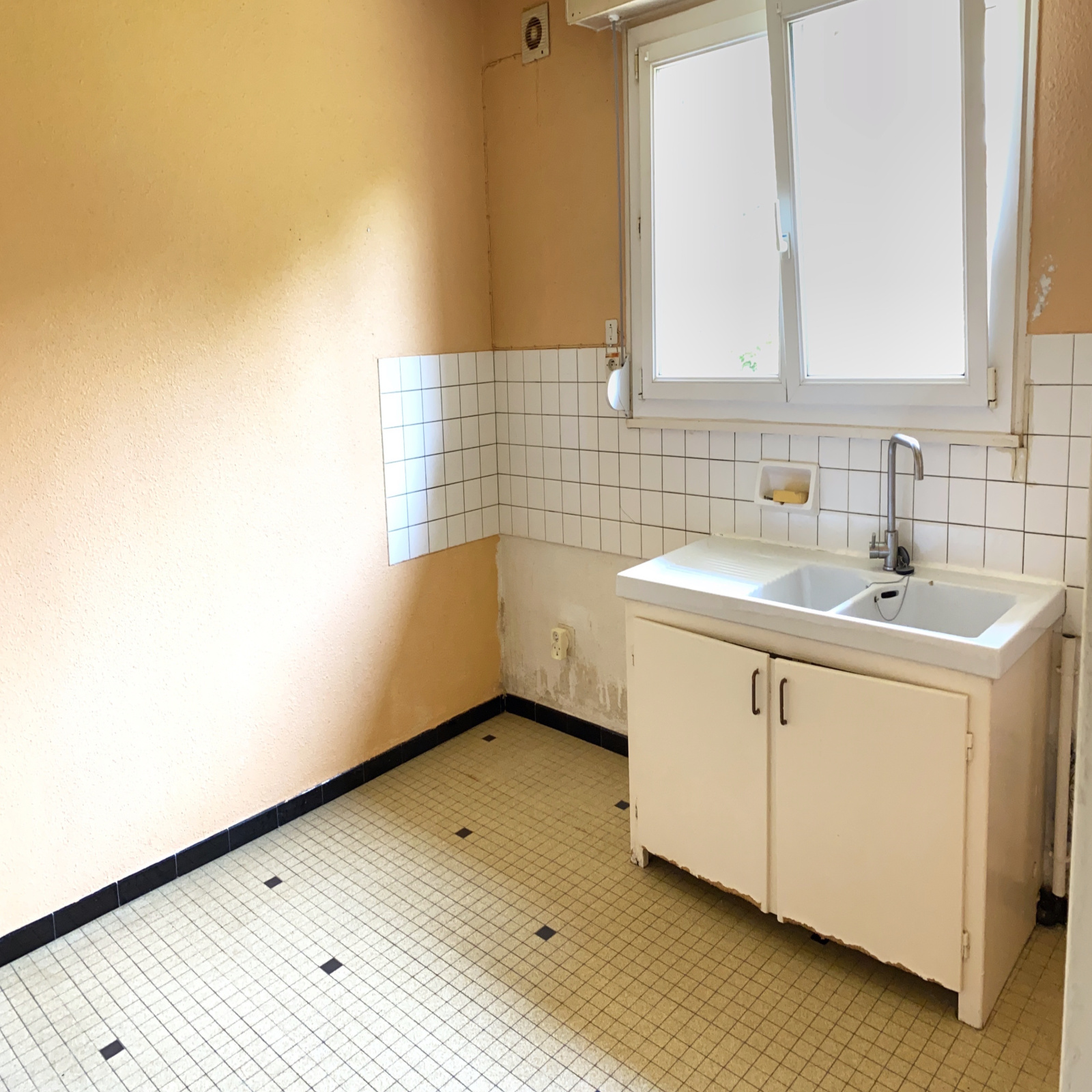 Entrée sur dégagement, cuisine (9.6 m² env), séjour (20 m² env), 2 chambres dont une avec placard (10 et 10.4 m² env), salle de bains (3.9 m² env), wc avec lave-mains.