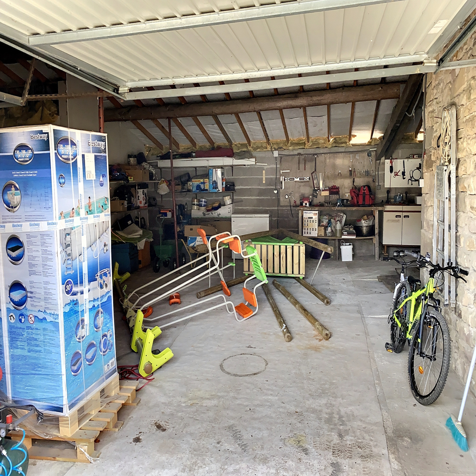 Bâtiment non attenant : dépendance, double garage, un bureau (30 m² env), wc.