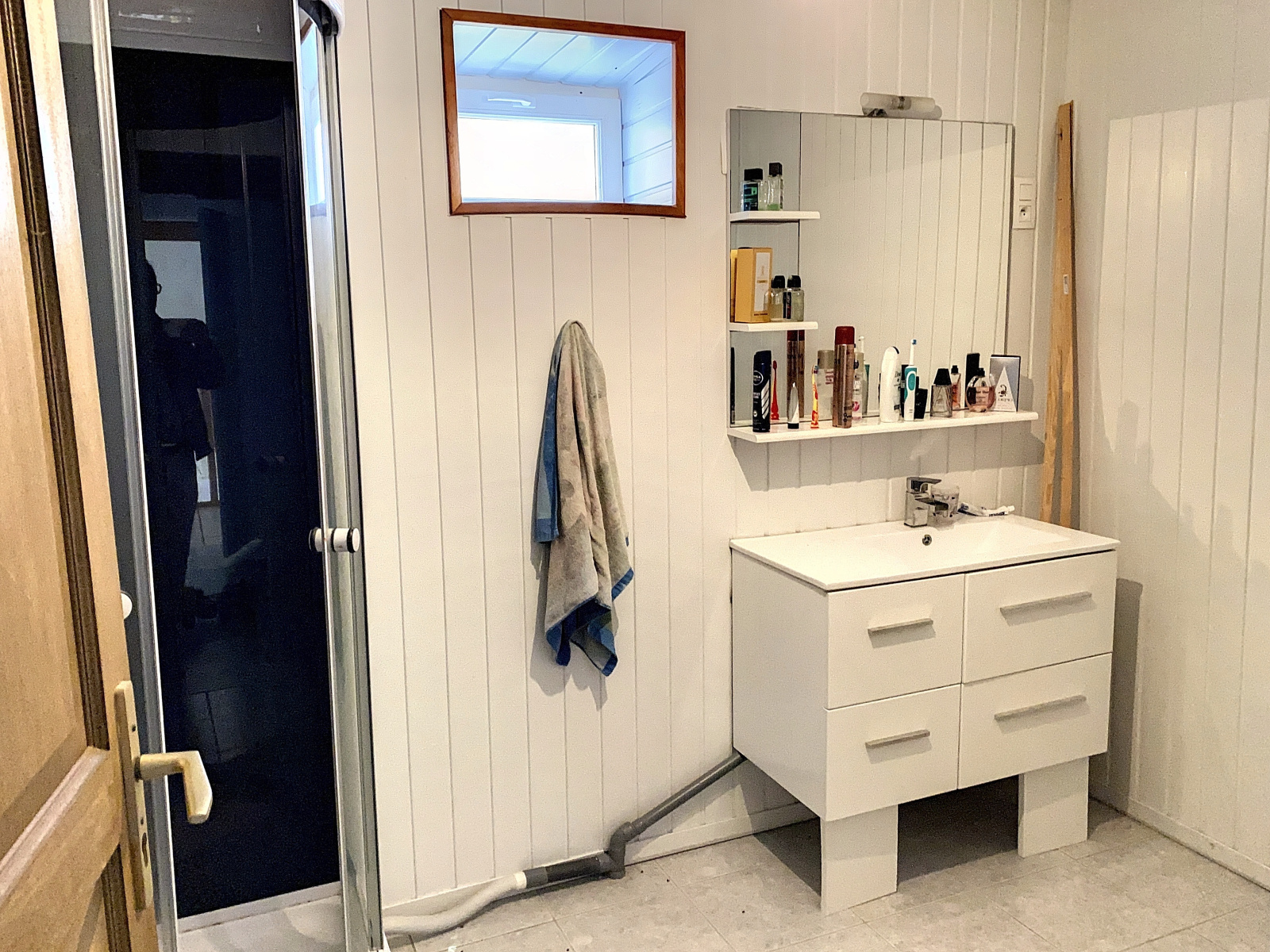 Au rez-de-chaussée : entrée avec placards (13 m² env), cuisine équipée (21 m² env), salle à manger / salon (43 m² env), salon(13 m² env), une chambre (15 m² env), grande salle de bains avec douche et placard (21 m² env), wc, chaufferie (6 m² env).