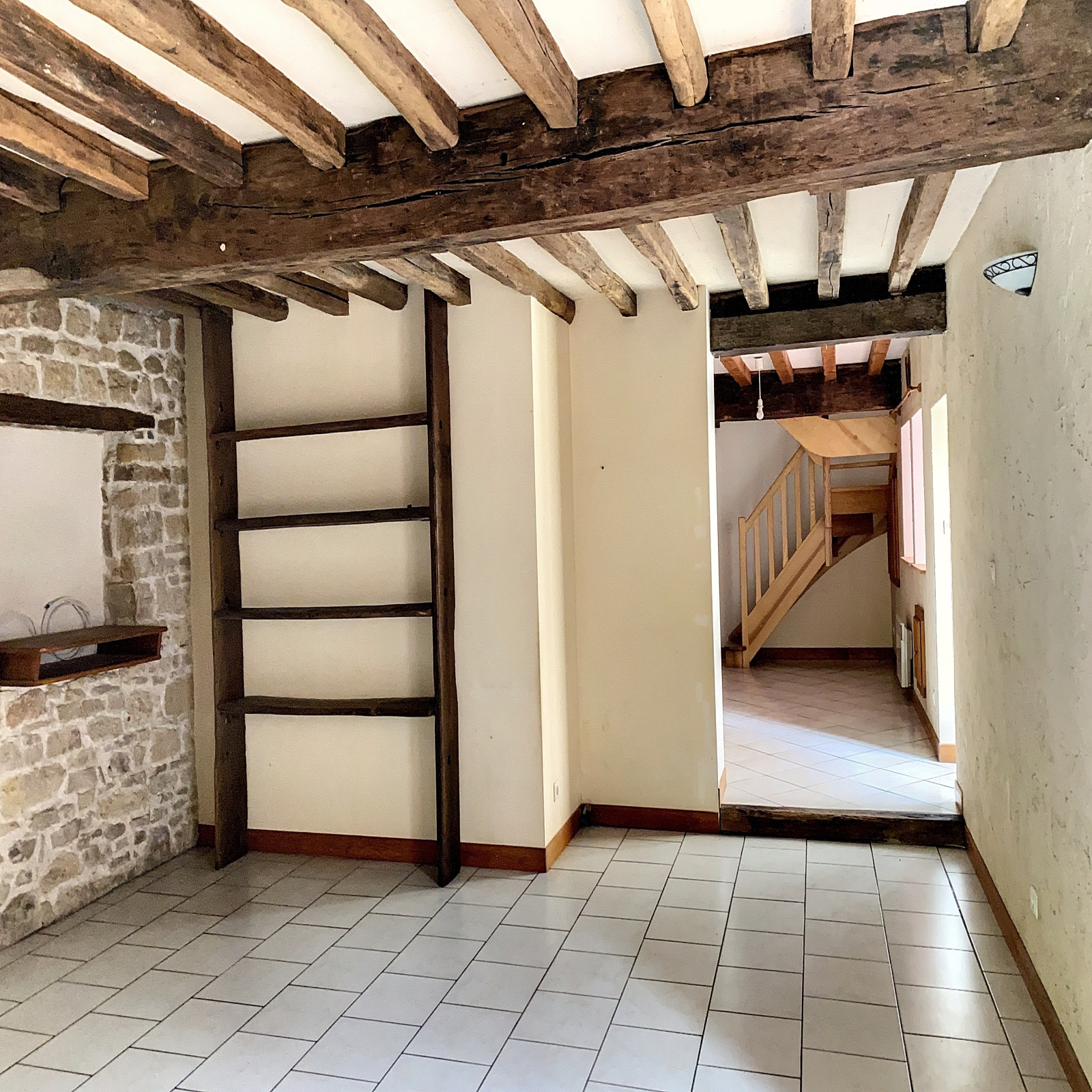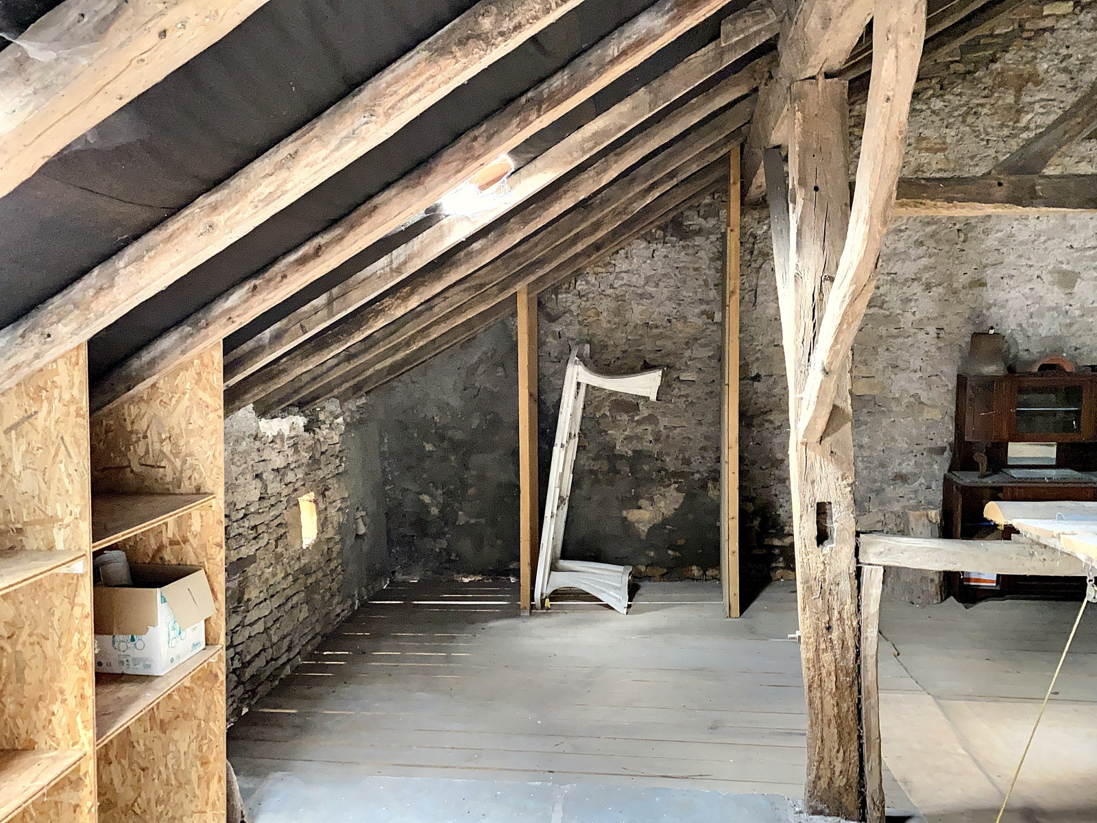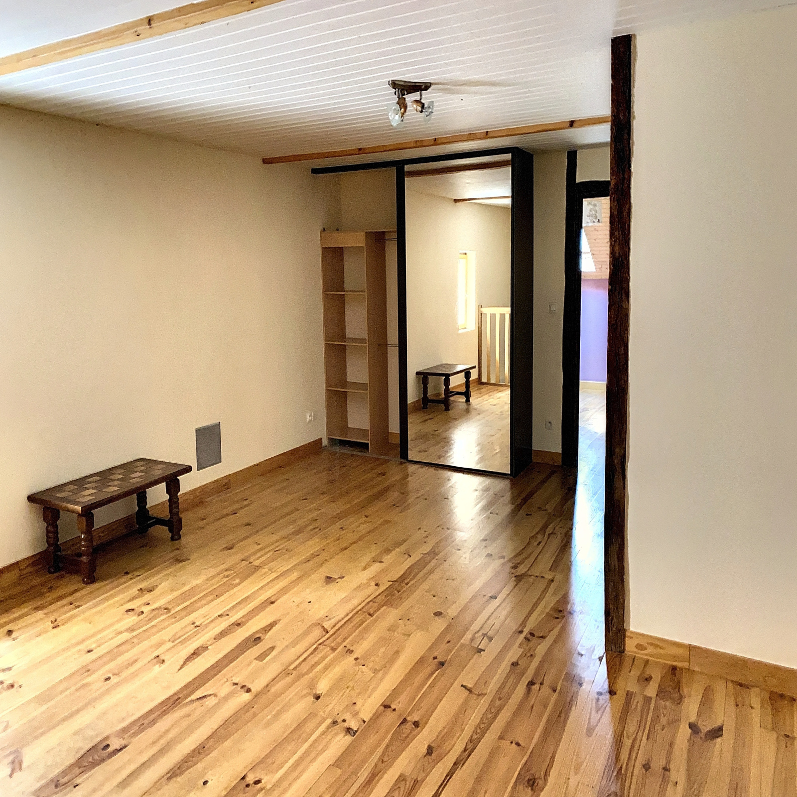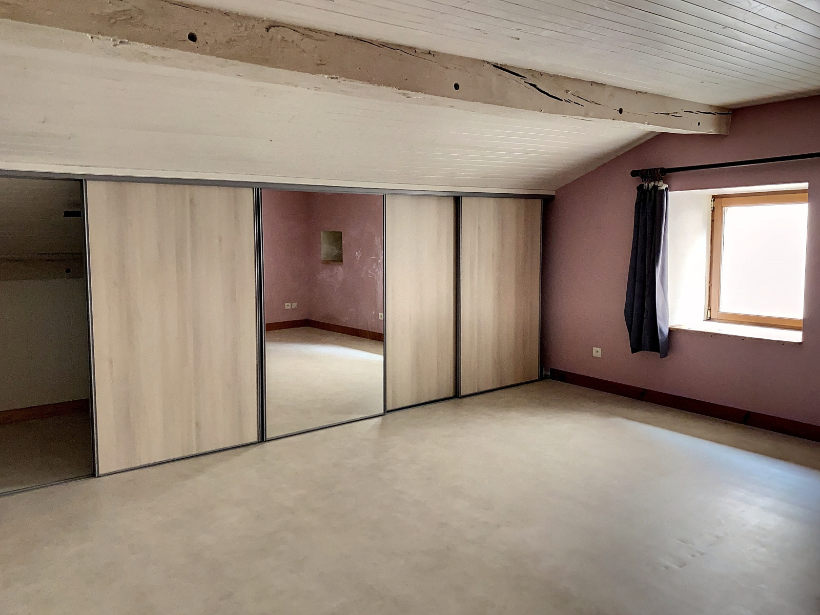 A l’étage : mezzanine de 40 m² env, 2 grandes chambres, cabinet de toilette (wc, lavabo, possibilité douche).