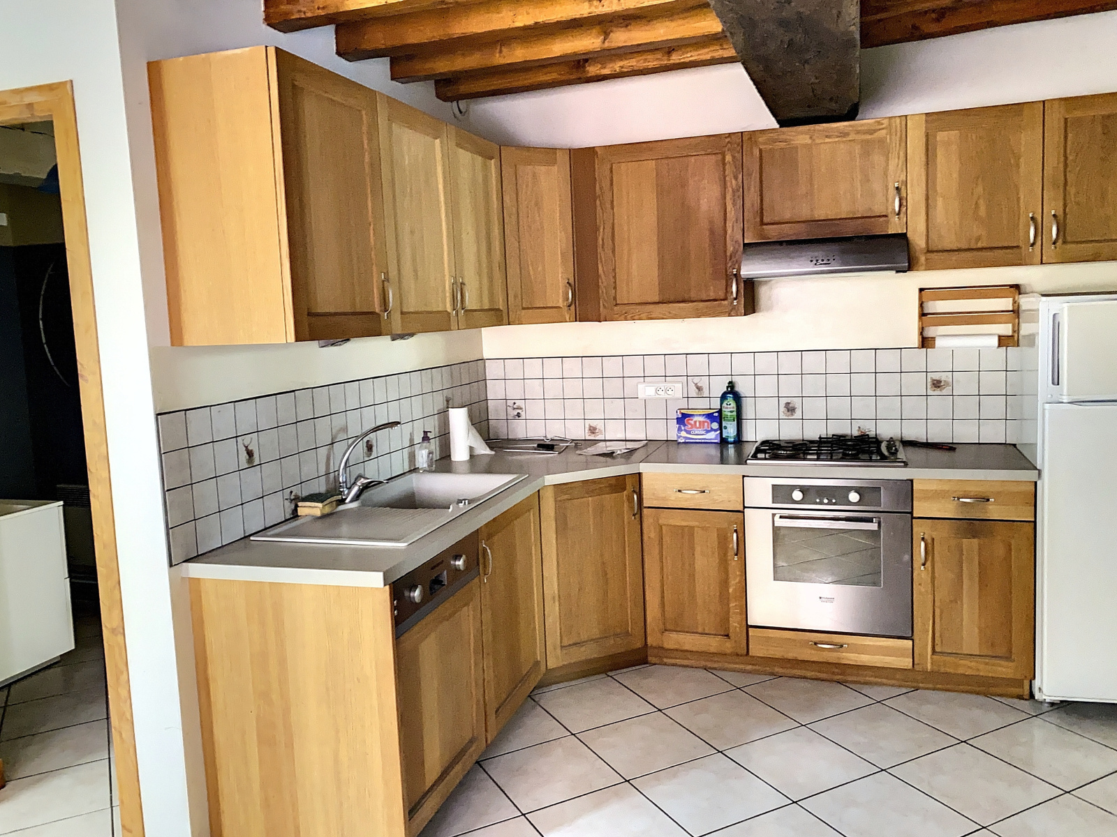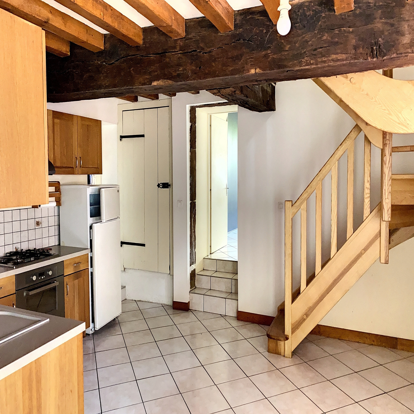 Au rez de chaussée : une pièce avec four à pain, cuisine ouverte sur salle à manger, salon salle de bains avec wc, une pièce (chambre ou autre).